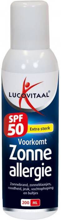 Lucovitaal Zonneallergie spray SPF 50Lucovitaal Zonneallergie SPF 50 bevat een UVA/UVB filter met een extra hoge zonbeschermingsfactor, SPF50. De Zonneallergie Spray van Lucovitaal legt een barrire op de huid zodat UVA en UVB stralen worden geblokkeerd. De spray is gemakkelijk aan te brengen en kan door zowel volwassenen als kinderen gebruikt worden. Zonneallergie Spray is parfumvrij. * Extra hoge UVA en UVB beschermingsfactor SPF50 * Droogt de huid niet uit * Ontwikkelt om zonneallergie, zonneblaasjes, vochtophoping, roodheid, jeuk en bultjes te voorkomen.